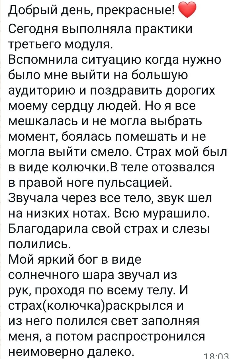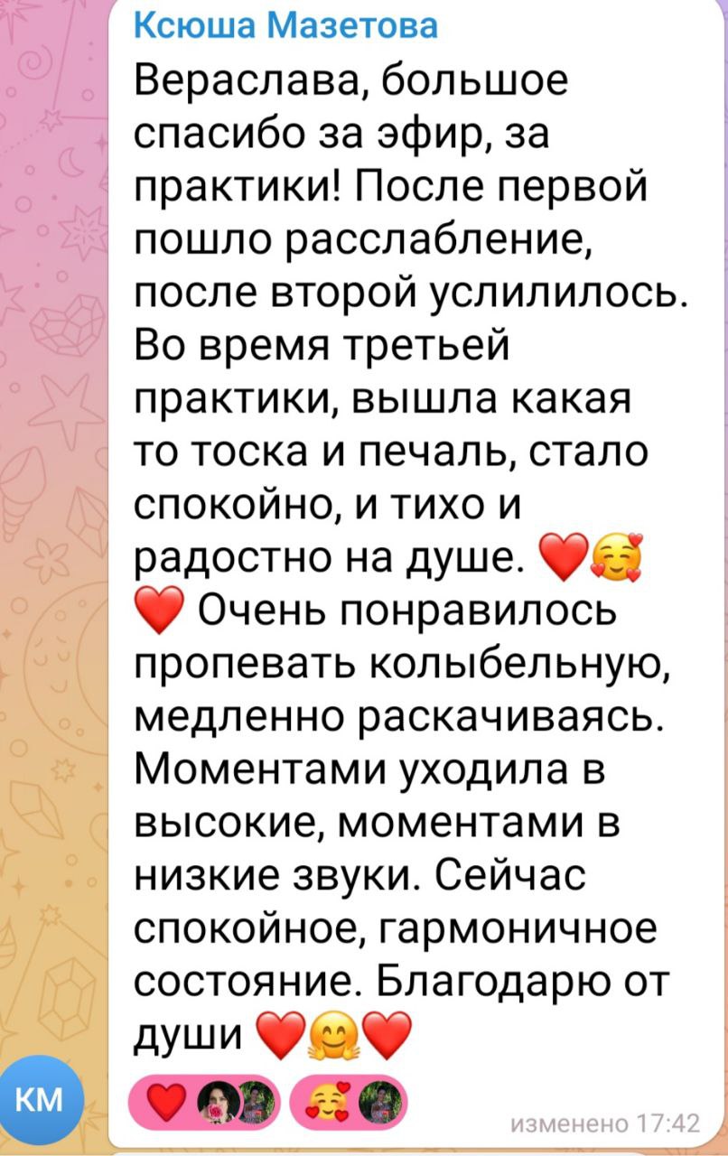 Ощущение чистоты внутри и возвращения к себе живой, настоящей и звучащей.