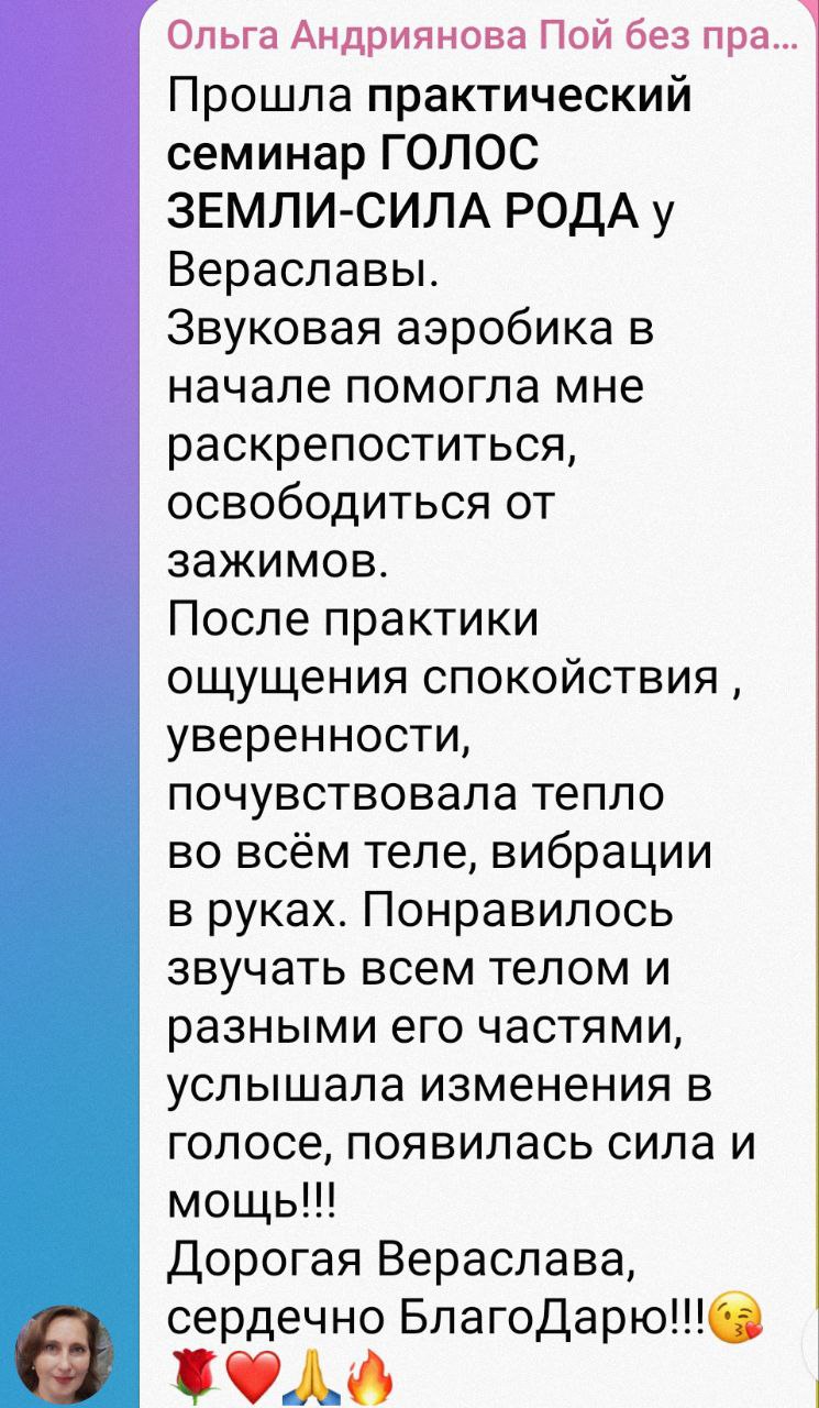 Это пространство чистоты, красоты, воздуха, тела и живого голоса. Здесь ты не обязана звучать “правильно” — здесь можно начать звучать по-настоящему.