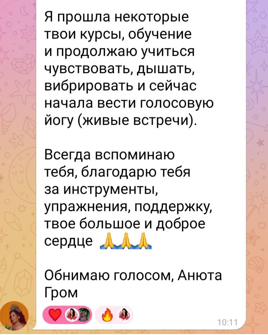А можно сделать выбор себя, где ты начнёшь звучать глубже, мягче, свободнее и честнее — в теле, в голосе и в жизни.